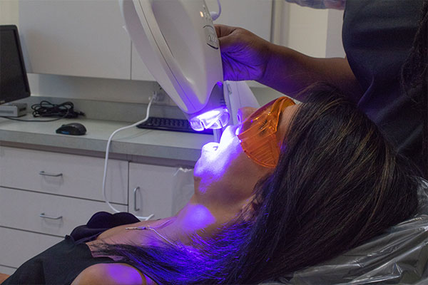Zoom whitening uses a specially formulated bleaching gel that we apply directly to the teeth. Once applied, the Zoom lamp uses heat and light to activate the gel for incredible results.